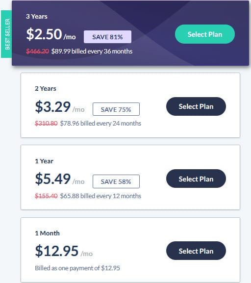 帐户范围从每月 5 美元到 20 美元不等,还有额外的定期折扣。
